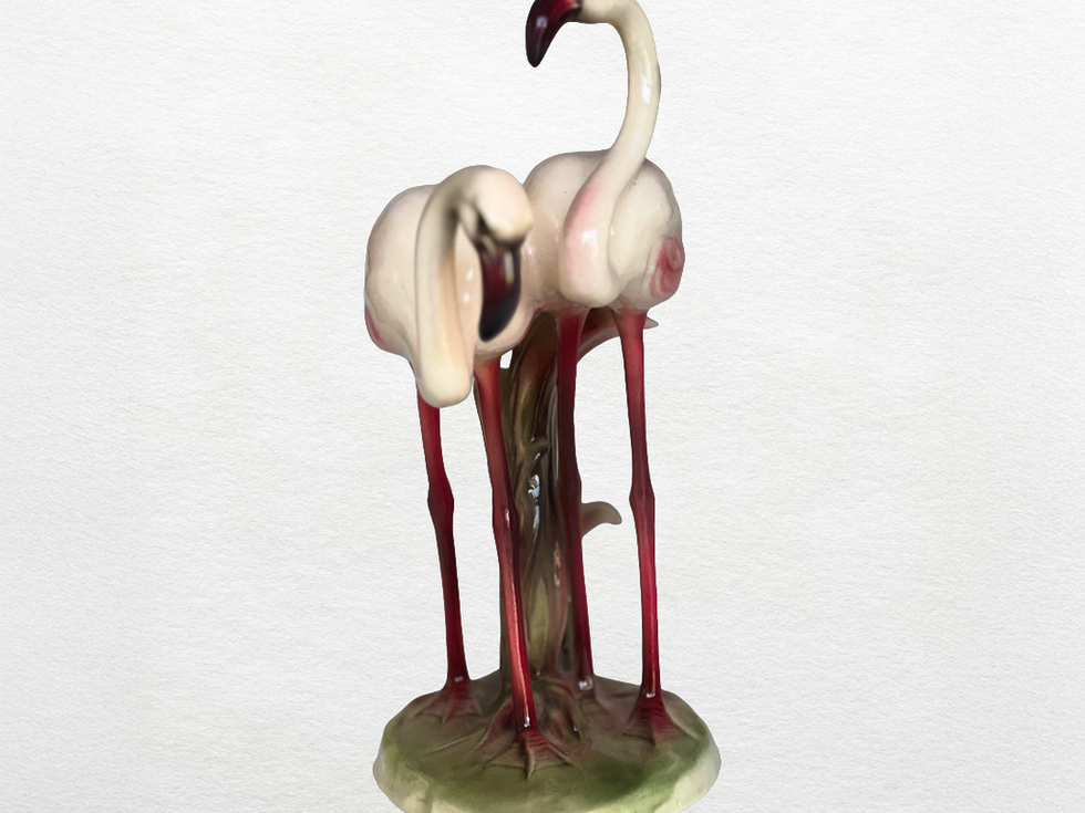 “Flamingos”, modelado por Rudolf Chocholka para a tradicional fabricante Keramos em Viena, é uma peça em porcelana do período Art Nouveau, reconhecida pela fluidez das formas e pela delicadeza dos detalhes.